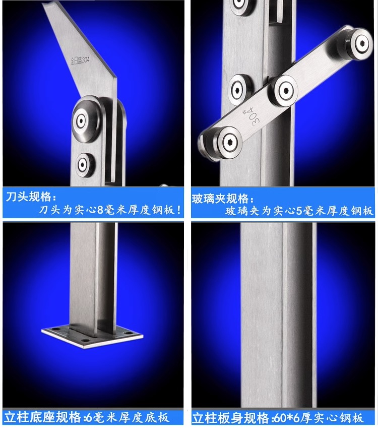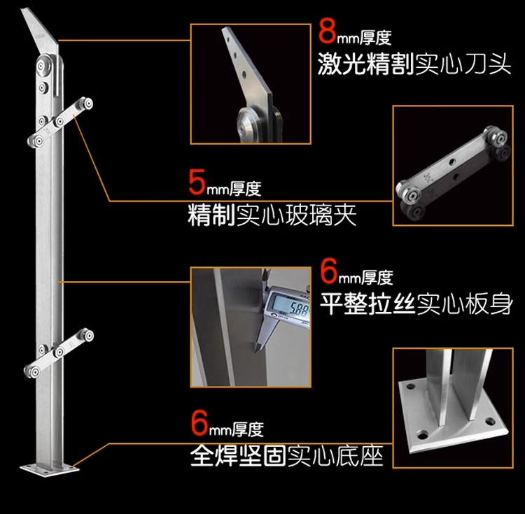 此產(chǎn)品為工程護欄立柱,多次被市政府,高鐵站,飛機場,超商,大型企業(yè)采購。強度高,耐磨損,耐腐蝕,色澤好。加厚價款底座更加結(jié)實耐用,圓棒玻璃夾安裝方便