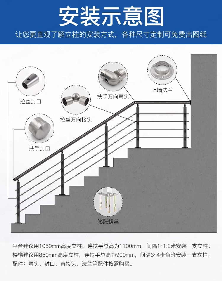 欄桿高度(一般在 900mm-1200mm之間,具體規(guī)格可按用途設(shè)定)